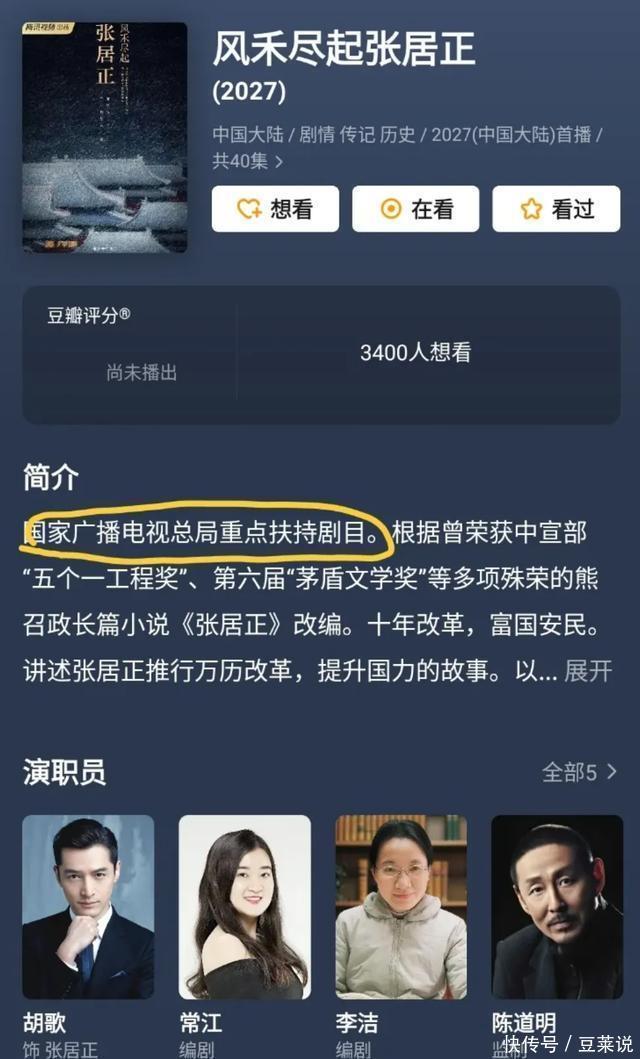 但是小编我认为:胡歌这个年龄演正剧人物合适,年龄够了,演技也沉淀下来了。 这种历史大剧尤其是张居正除了胡歌这种血厚的我想不到谁还能扛得住,毕竟还得扛招商和收视。