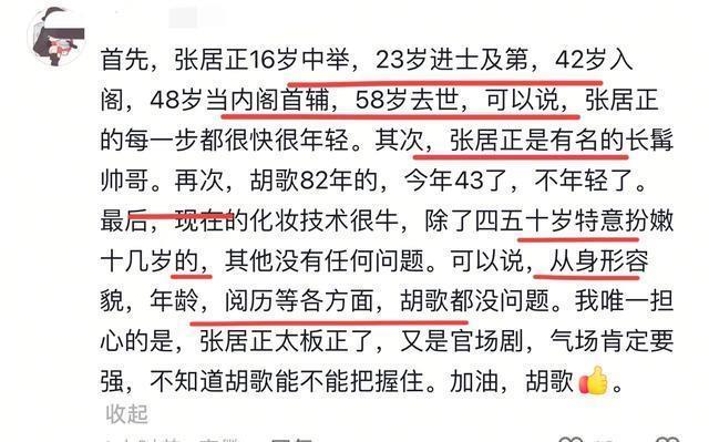 小编我斗胆猜测,可能出于艺术创作,电视剧情可能会把张居正狠辣的那一面弱化。 也有网友表示:胡歌已经不年轻了,如果是演张居正的每一个阶段,可能不太适合。